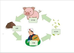 このお茶は、地元のお茶農家、脇製茶場さんから、お茶を分けてもらい、飼料に混ぜて与えています。
